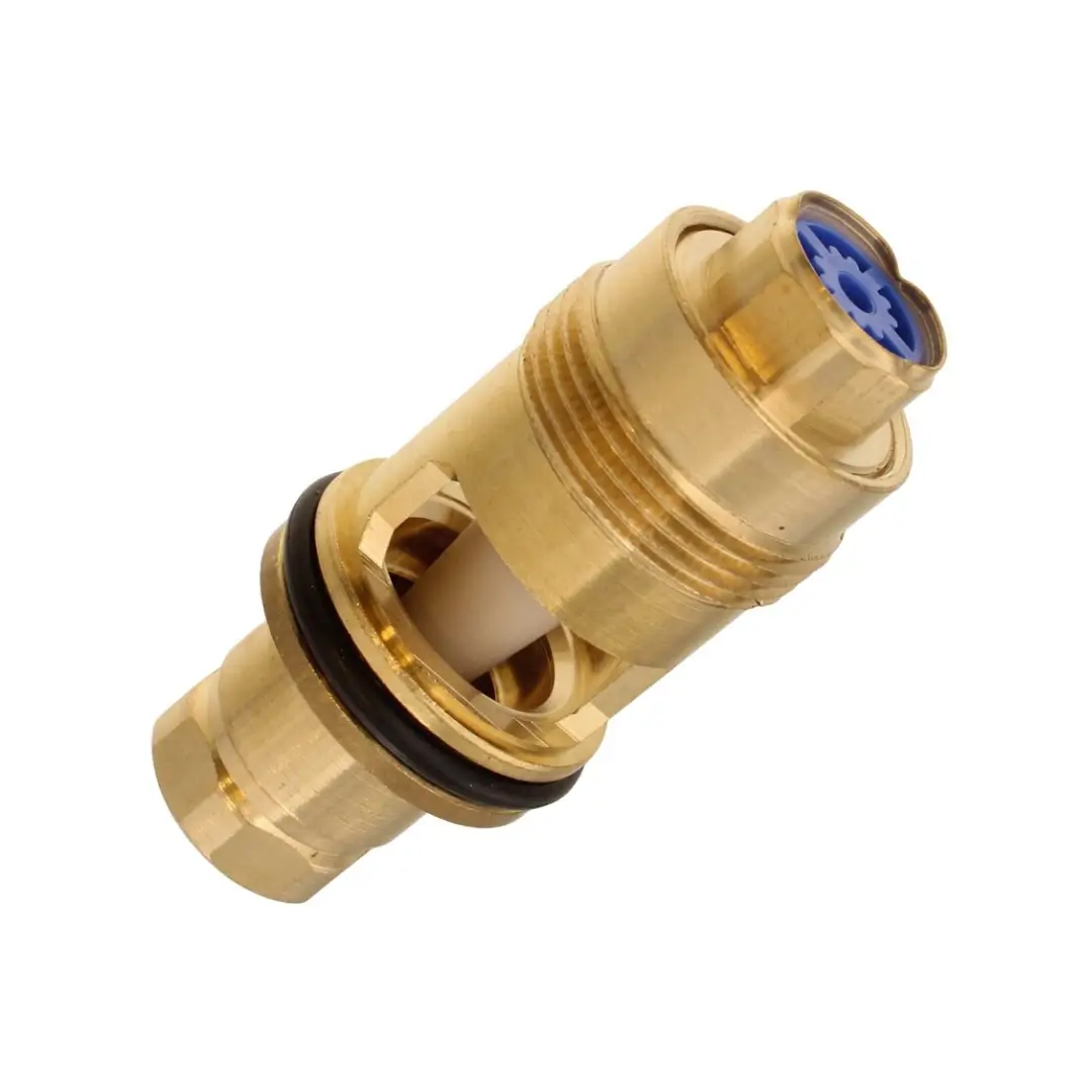This flow turbine measures domestic hot water flow, so the boiler can detect when a tap is opened and fire correctly. However, over time, limescale or debris can cause the turbine to stick or misread the flow.